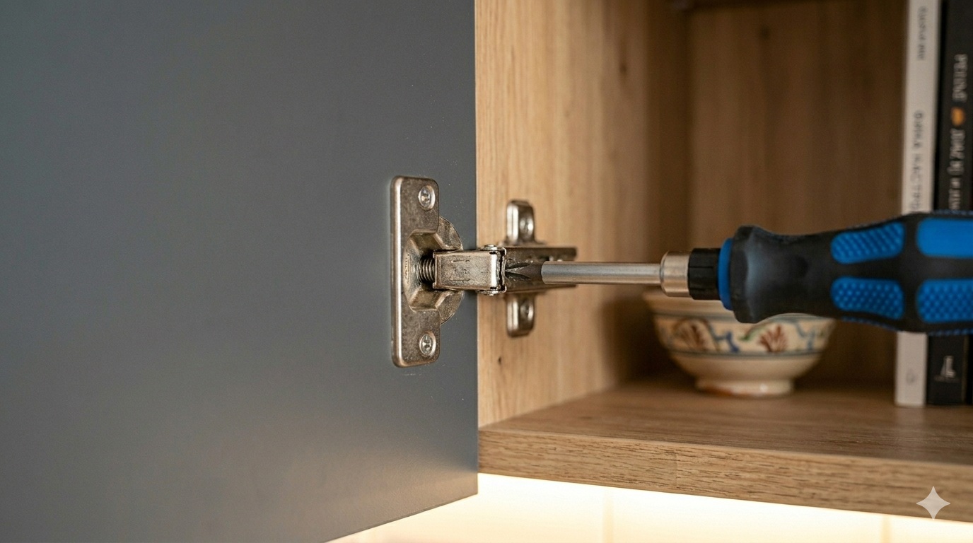 Не бързай с тази стъпка. Седни на дистанция и гледай целия ред врати като цяло — малките разлики се виждат най-добре от разстояние 2–3 метра. Идеалният монтаж е онзи, при който очите ти не спират на нито една врата, защото всички са в перфектна хармония. Точно тук се вижда разликата между набързо сглобена кухня и добре свършена работа.