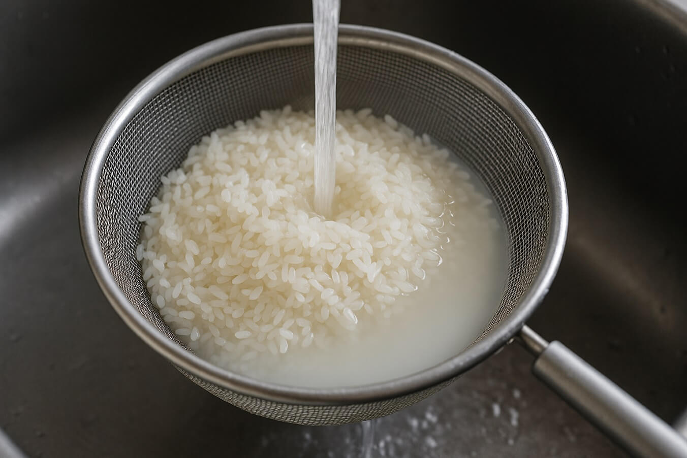 Този процес премахва излишното нишесте от повърхността на зърната. Излишното нишесте е основната причина за залепването на ориза. Измиването може да отнеме 3-5 минути в зависимост от сорта.